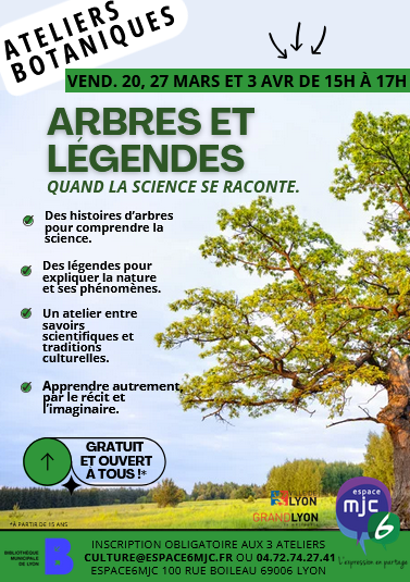 En partenariat avec la Bibliothèque du 6, nous vous invitons à participer à un cycle de 3 ateliers "Arbres et Légendes", un voyage unique où se rencontrent les sciences et la narration. Ces ateliers proposent une approche croisée entre botanique, légendes et contes, pour offrir aux participant·e·s une perspective originale sur la science des arbres.